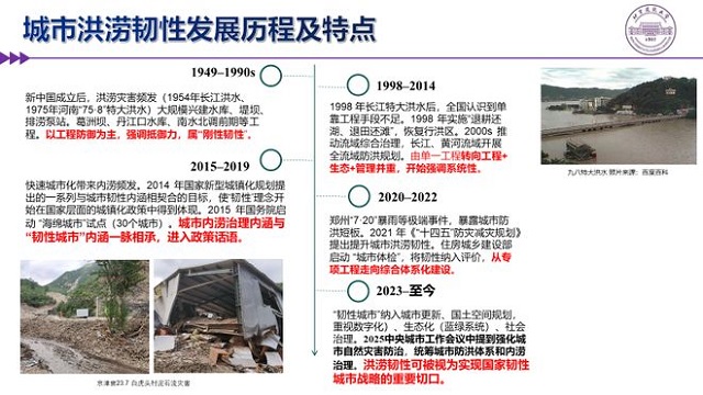 綜合治理期(2025-:融合數字生態,突出智慧韌性,強調洪澇污共治。以2025年中央城市工作會議為標志,城市自然災害防治工作進一步強化,統籌城市防洪與內澇治理體系。韌性城市全面納入城市更新和國土空間規劃,強調數字化、生態化和社會治理,洪澇韌性成為實現國家韌性城市戰略的關鍵切入點,以城市更新為抓手,一方面補齊城市的短板,另一方面強化氣候變化背景下的極端降雨的有效應對,更加注重科學性、流域性、多目標性和智慧賦能。