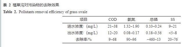 與生物滯留池和透水混凝土相比,植草溝在去除COD、SS和總磷方面不具優(yōu)勢,特別是總磷。但是植草溝在去除氨氮方面有明顯優(yōu)勢,平均去除率為84.4%。此外,植草溝的建設(shè)維護(hù)成本僅為116.3元/m2,經(jīng)濟(jì)優(yōu)勢顯著[27]。