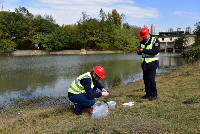 環保人員在某地檢查地表水污染情況(資料圖)。