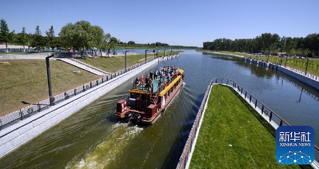 2022年6月24日,京杭大運(yùn)河京冀段實(shí)現(xiàn)游船通航(新華社記者 李欣攝)