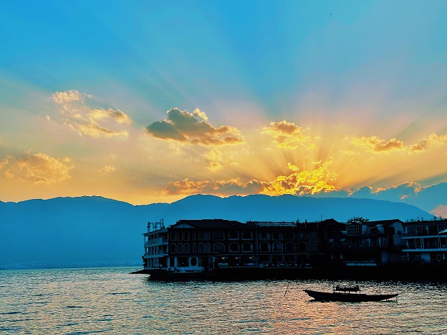 傍晚的蒼山洱海。