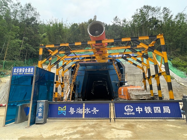 從大水橋水庫一路東北方向前行370多公里,記者來到正在施工的貴子支洞隧洞工程。隧洞總長約64.5公里,最大埋深約910米,將穿越擁有粵西第一高峰的云開大山。2022年8月31日,環北部灣水資源配置工程開工儀式在這里召開。