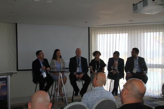 主題報告后由以色列Mekorot工程技術和戰略規劃副總裁Yossi Yaacoby先生主持了主題為“通過創新增強韌性”的小組討論,來自以色列水務局安全應急和網絡高級部門經理Danny Lacker先生、以色列創新局初創部門氣候與健康高級總監Hagit Schwimmer女士、法國國家水工業與企業聯盟(UIE)董事會蘇伊士企業風險投資總監Jean-Luc Venture先生、巴西國家水務和衛生局水務和社會經濟研究主管Felip Tavares先生、美國ICI基金聯合創始董事總經理Gili Elkin女士參加了討論。