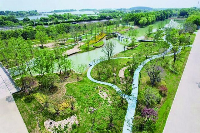 一方面,項(xiàng)目全面采用綠色源頭海綿設(shè)施,以減少城市徑流外排、減輕面源污染,同時(shí)滿足年徑流總量控制率和SS(固體懸浮物)去除率的相關(guān)要求。另一方面,充分利用原有河道自然風(fēng)貌,在河道兩岸布局雨水花園、植草溝、生態(tài)綠地等自然生態(tài)區(qū)域,營(yíng)造優(yōu)美宜人的水景觀,打造具有經(jīng)開區(qū)特點(diǎn)的濱水景觀帶,發(fā)掘生態(tài)旅游潛力,為開發(fā)開放式、生態(tài)型的現(xiàn)代化新城打下扎實(shí)的基礎(chǔ)。此外,項(xiàng)目還通過水系連通等工程建設(shè),使清水河全線貫通順暢,進(jìn)而解決經(jīng)開區(qū)向東排水問題,加快完善太湖新城水系網(wǎng),提高經(jīng)開區(qū)防洪減災(zāi)水平。