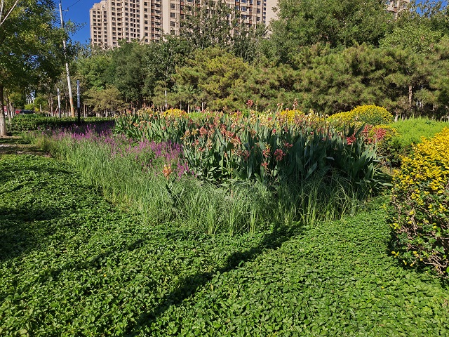搖曳的美人蕉、綻放的千屈菜、翠綠的馬藺……這些植被在點“靚”環境的同時,也承擔起了輔助調蓄和凈化徑流雨水等實際功能。自2016年4月,天津市獲批國家第二批海綿城市建設試點以來,天津高新區持續推進海綿城市建設走向縱深,渤龍湖科技園綠地海綿改造項目建設已取得顯著進展。