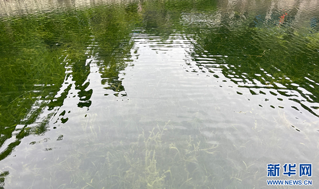 油坊河湖庫,湖水清澈見底,湖底水草搖曳。