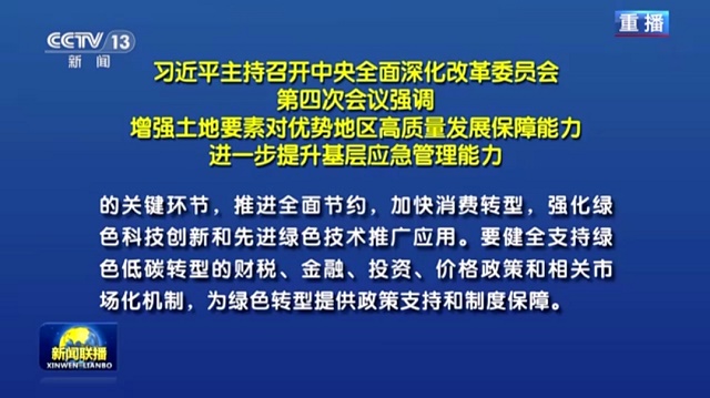 2月19日下午,中共中央總書記、國家主席、中央軍委主席、中央全面深化改革委員會主任習(xí)近平主持召開中央全面深化改革委員會第四次會議,審議通過了《關(guān)于促進經(jīng)濟社會發(fā)展全面綠色轉(zhuǎn)型的意見》等重要文件。