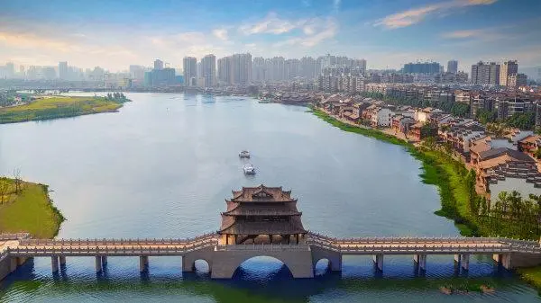 穿紫河已成為城市碧玉帶。