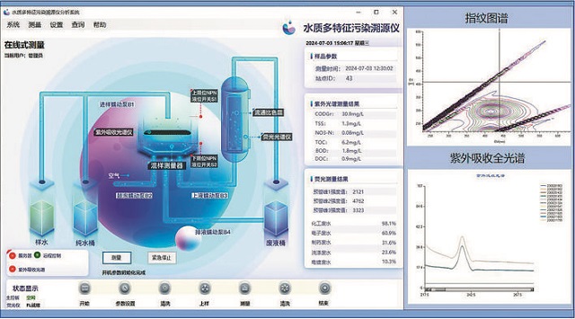 在現(xiàn)場(chǎng)記者看到,設(shè)備屏幕上出現(xiàn)一個(gè)水質(zhì)多源光譜信息和相應(yīng)的溯源比對(duì)結(jié)果,從外觀上看,與人的指紋有幾分相似。曹毅進(jìn)一步解釋道,“鑒于不同廢水樣本中化學(xué)成分的千差萬(wàn)別,每一種廢水都攜帶著其特有的熒光光譜與紫外光譜‘指紋’。我們正是通過捕捉這些水樣中的熒光、紫外等特征光譜信息,如同解鎖密碼一樣,助力我們迅速鎖定污染源頭。這一技術(shù)不僅是實(shí)現(xiàn)‘源頭治污、精準(zhǔn)治污、科學(xué)治污、依法治污’理念的重要基石,更是推動(dòng)環(huán)境保護(hù)邁向智能化、精細(xì)化的關(guān)鍵一步。”