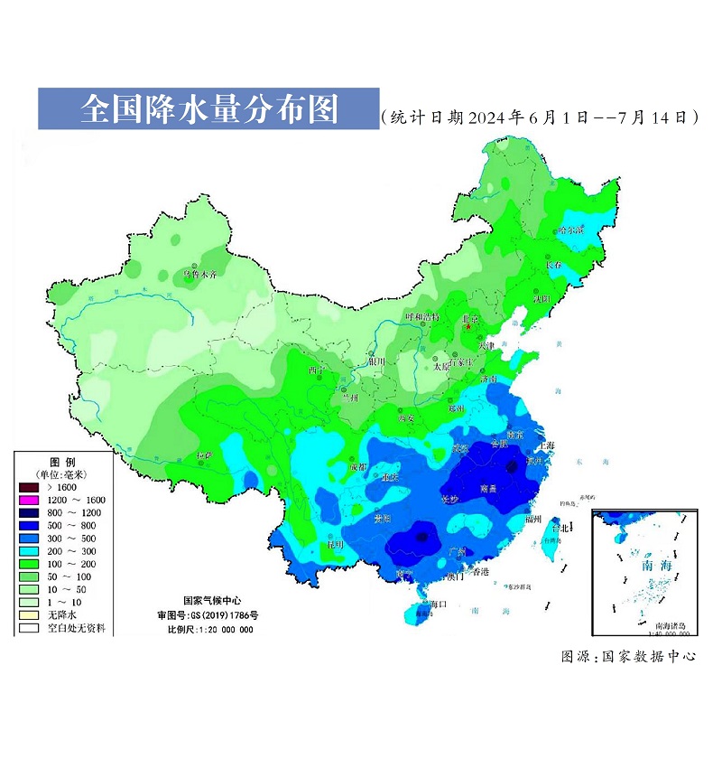 今年上半年我國共出現(xiàn)19輪暴雨天氣過程,長江以南大部降雨偏多。統(tǒng)計(jì)數(shù)據(jù)顯示,長江以南地區(qū)6月的累計(jì)降雨量普遍達(dá)到300至500毫米,其中,廣東海豐降雨最多,累計(jì)降雨量高達(dá)2332.6毫米,廣西防城港市防城區(qū)以14個(gè)暴雨日成為暴雨最頻繁的地方。