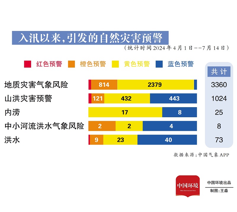 僅在6月份,南方地區(qū)經(jīng)歷了多輪強(qiáng)降雨天氣過程,中央氣象臺(tái)從6月10日開始連續(xù)21天發(fā)布暴雨預(yù)警,其中4天發(fā)布了最高級別的暴雨紅色預(yù)警。全國共發(fā)布紅色預(yù)警信息1969條,其中暴雨紅色預(yù)警信息占全部的45.7%,同比增加61.1%。