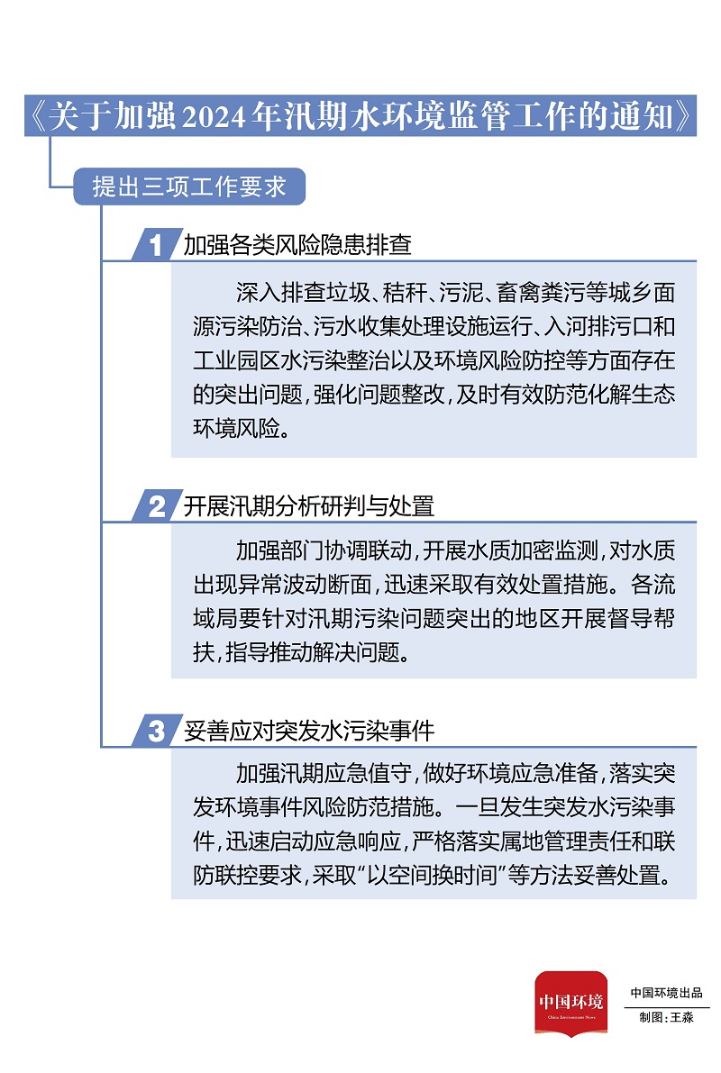 同時(shí),極端降水對于環(huán)境風(fēng)險(xiǎn)防控工作帶來不小的挑戰(zhàn)和壓力。目前,生態(tài)環(huán)境部對汛期環(huán)境監(jiān)管和突發(fā)環(huán)境事件應(yīng)對作出安排部署,印發(fā)《關(guān)于加強(qiáng)2024年汛期水環(huán)境監(jiān)管工作的通知》,要求各地進(jìn)一步加強(qiáng)汛期水環(huán)境監(jiān)管,防范汛期水環(huán)境質(zhì)量惡化以及發(fā)生重大水污染事件,切實(shí)保障飲水安全。生態(tài)環(huán)境部生態(tài)環(huán)境應(yīng)急辦主任李天威表示,明確要求各地參考國控?cái)嗝鏆v年汛期水質(zhì)數(shù)據(jù)和集中式飲用水水源地水源環(huán)境狀況調(diào)查評估的情況,確定本行政區(qū)域汛期重點(diǎn)關(guān)注斷面和飲用水水源地,識(shí)別斷面匯水范圍內(nèi)影響水質(zhì)以及飲水安全的主要污染源。