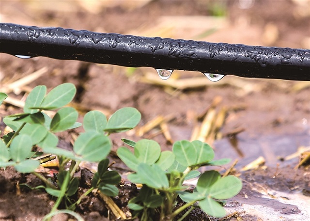 河南省博愛縣金城鄉(xiāng)武閣寨村,村民用滴灌為花生澆水。