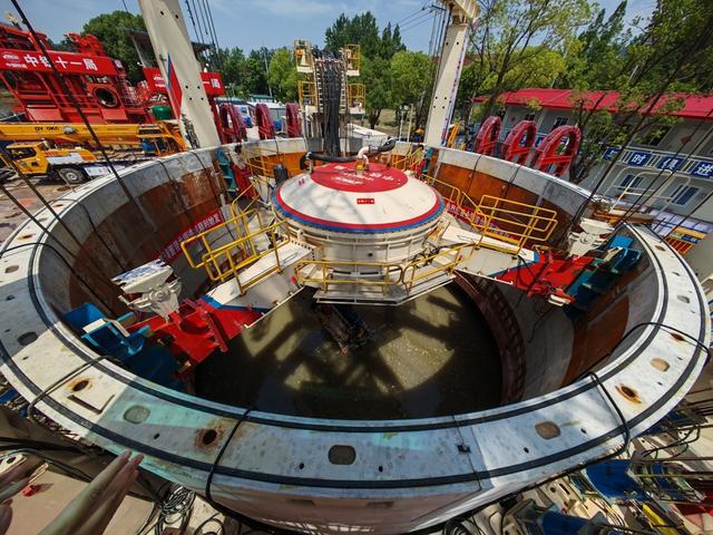 中鐵十一局自主研制的初雨調蓄豎井掘進機,則是向深處要空間,可大大減少工程項目對土地的需求,施工占地只需200平方米,核心挖掘區只是一個外徑16.3米的圓形區域。