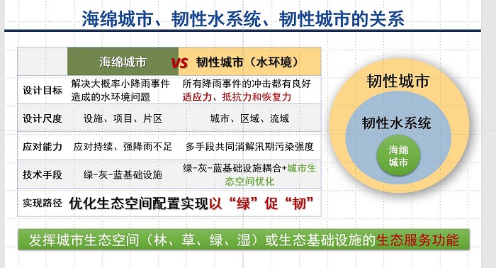 中國環(huán)境報:為更好地實現城市雨洪管理,我國自2014年起推廣海綿城市。近年來,打造韌性城市成為汛期城市防洪和內澇治理的一項解決方案。二者有何聯系與區(qū)別?
