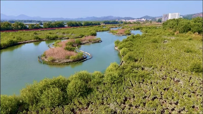 此外,生態優勢正轉化為發展優勢。在好招樓濕地公園,來自深圳的研學團隊正在觀察鷺鳥的棲息情況。“這里的生態太好了,孩子們能親眼看到紅樹林生態系統,比書本上生動多了。”帶隊老師表示。目前,“生態修復+濕地旅游+研學教育”的融合發展模式已初見成效,海龜灣旅游區成為國家3A級景區,相關研學產品入選省級特色名單。