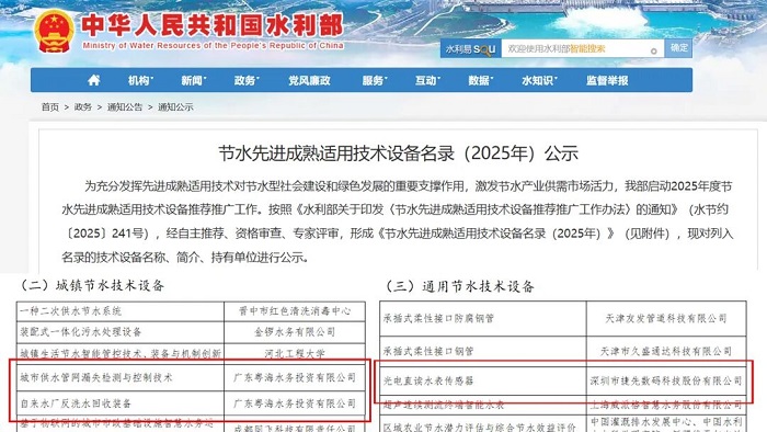 粵海水務3項創新成果入選國家級節水技術設備名錄